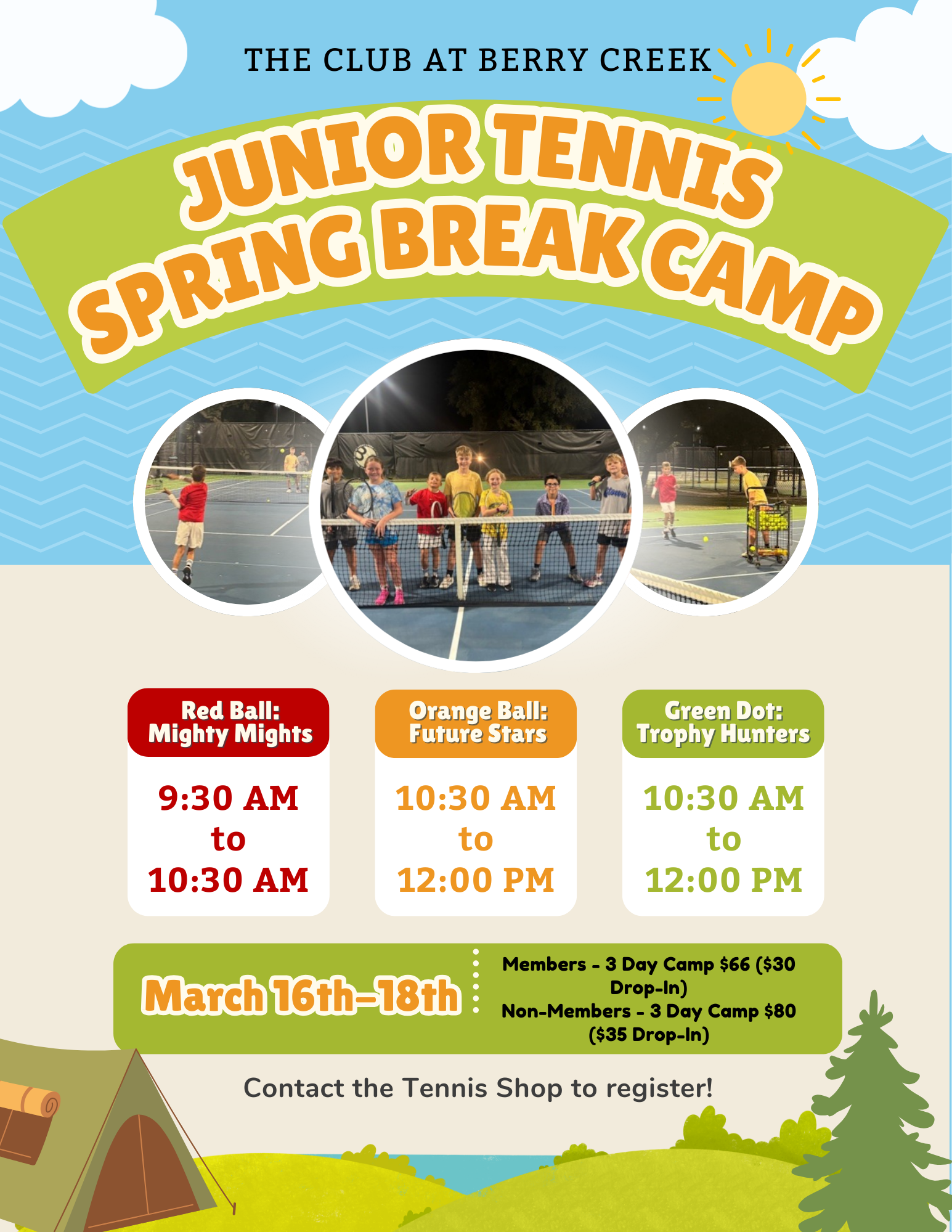 Berry Creek welcomes all members, member guests and Berry Creek residents to participate in our fall junior program. Classes begin the week of September 8th and finish the week of October 27th. (8 Weeks) Classes are one day a week or two days and discounts for 2nd children.