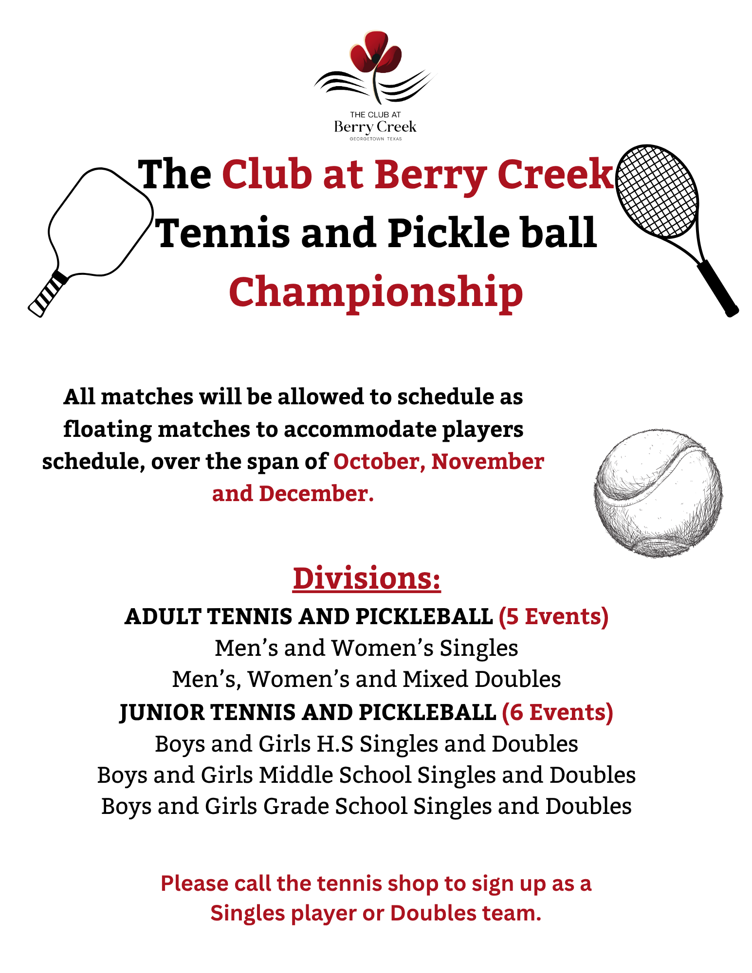 The Staff of Professionals enjoys the well earned reputation of providing the highest quality services and instruction in the greater Austin area. Stop by The Tennis Club at Berry Creek or call us at