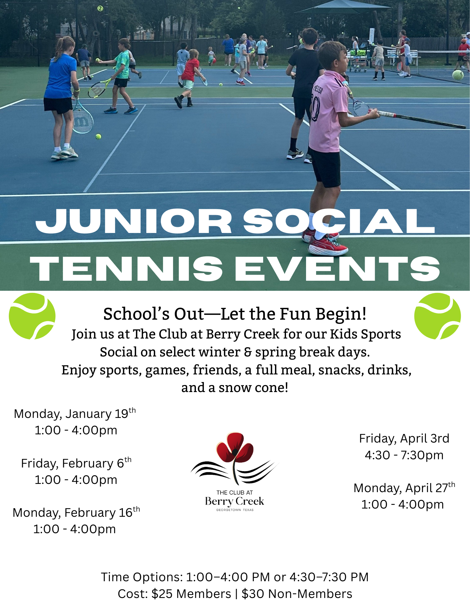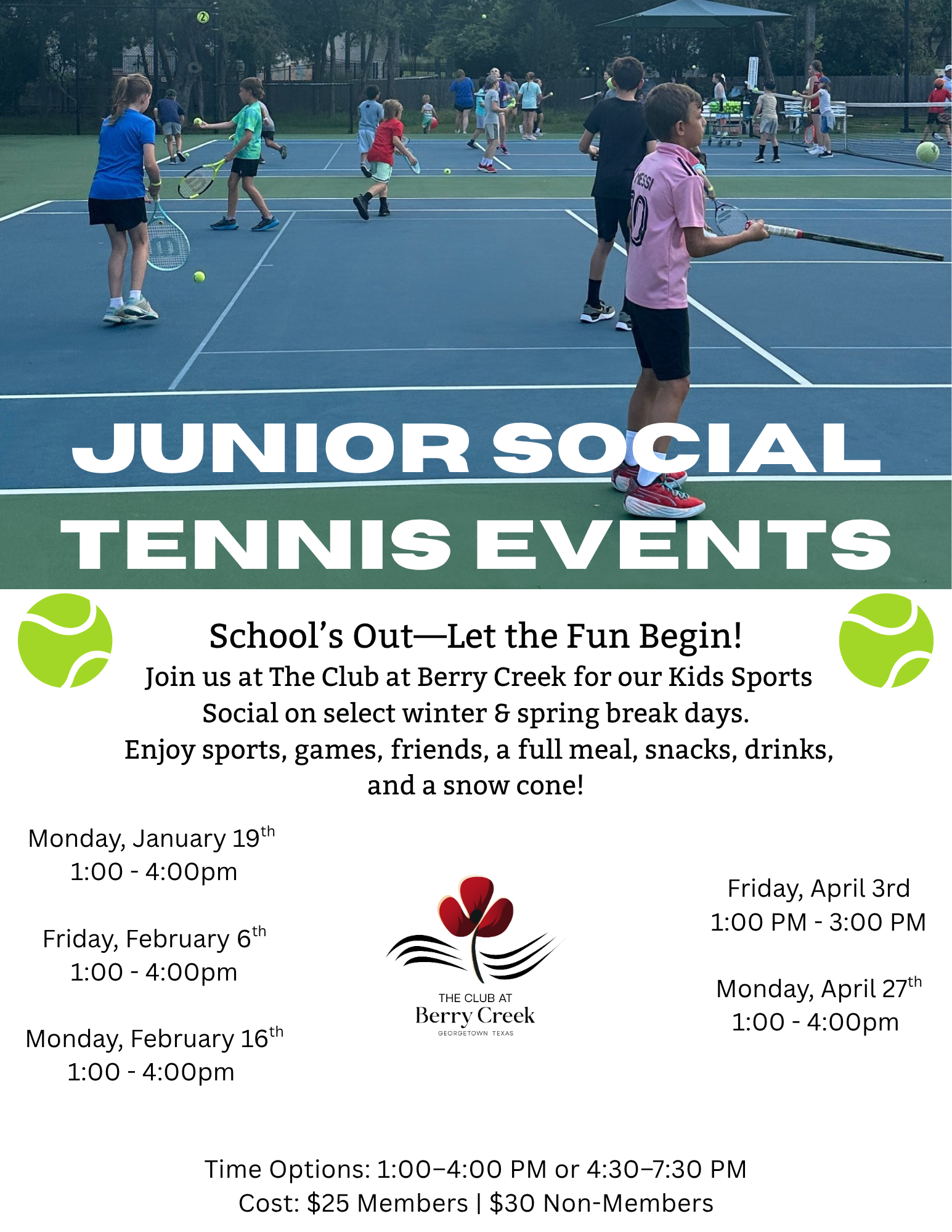 Berry Creek Junior Tennis Classes are designed to give Juniors, at all levels, a pathway to learning tennis.